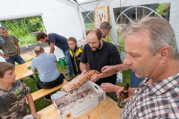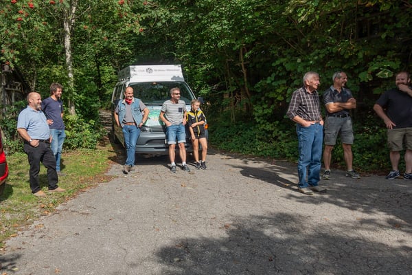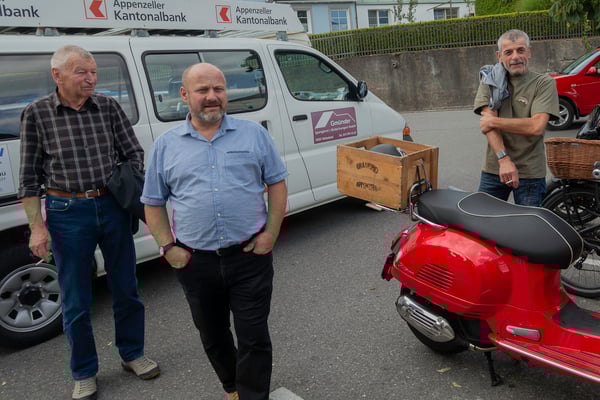 Biene, unser Ex-Präsident, hat einen Personenbus organisiert und wir fuhren vom Brauereiplatz aus gemeinsam via Bühler, über den Rotbach und schliesslich steil hinauf zur Mehlersweid. Nach einer kurzen Irrfahrt in einem eher unbekannten Gebiet von Appenzell Innerrhoden im Bezirk Schlatt-Haslen, fanden wird die Mehlersweid dann doch noch. Viele Unterstände, kleine Hüttchen und unzählige Sträucher, Bäume und Hecken. Ja, ein richtig schönes Refugium haben sich Vater Müller und sicherlich auch Jeannot und seine liebenswerte Frau aufgebaut. Ein wenig neidisch kann man da schon werden.