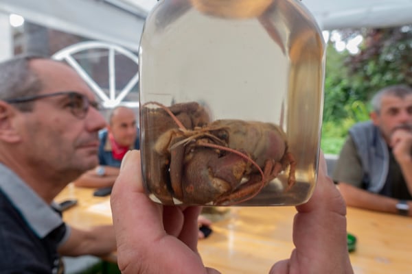 Wer von uns wusste zuvor schon, dass der Fortpflanzungsakt von Steinkrebsen etappenweise und gar nicht so spektakulär vor sich geht, wir bei uns Säugern? -Wohl niemand. Jeannot führte uns in eine Welt mit einem funktionierenden Oekosystem im Bereich der Steinkrebse. Es geht ihm nicht nur um Züchtung und Erhaltung der Art. - Nein, Jeannot ist auch sehr offen für die sinnvolle Nutzung dieser angeblich sehr köstlichen Tiere als Nahrungsmittel. Ausgesuchte Spitzenköche in der Region bauen sie sogar in exklusive Mehrgangmenues ein.