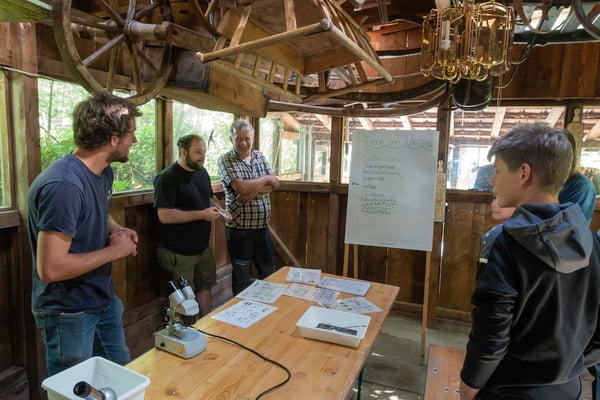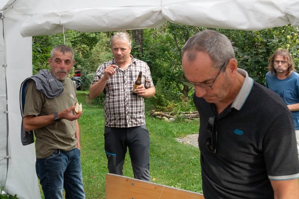 Jeannot erklärte uns das biologische WC, Marke (fast) Eigenbau. Wir erfuhren, wie man sich funktionierende Lebensräume für Krebse, Nährtiere aller Art und sogar Saiblinge mit allerlei einfachen Mitteln selber bauen kann. Es braucht dazu aber viel Herzblut, eine grosse Portion Willen und gute Freunde.