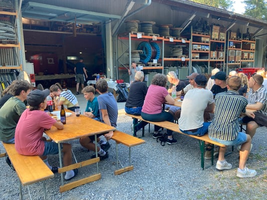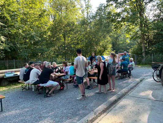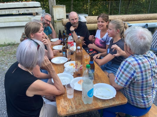 Wie jedes Jahr führten wir unseren Grillabend im Lager Felsenegg durch. Bei idealem Brötliwetter wurden die rund 45 Erwachsenen und Kinder nach dem Apero mit feinen Forellenknusperli verwöhnt. Danach gabs Würste vom Grill und eine ganze Menge Dessert. Vom Kuchen über Nussgipfel, Blechkuchen, Speckmöckli, Kirschtorte und Früchte war alles dabei. Herzlichen Dank den Frauen und Männern, die uns diese Köstlichkeiten gebracht haben. Ein grosses Dankeschön gebührt Daniela, Moritz, und Raffi für das Organisieren und Durchführen dieses gemütlichen Vereinsanlasses.