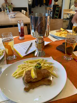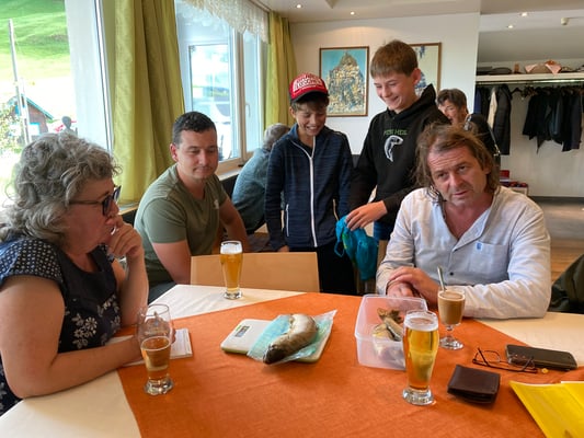 Anschliessend wurden die Fische inklusive Barbe vom Küchenteam filetiert und als Kusperli gereicht. Die Vorspeise schmeckte (auch die Barbe) vorzüglich. Weil die Fische nicht ausreichten, gab es als Hauptspeise Schnitzel Pommes. Ein herzliches Dankeschön an den Freudenberg Wirt Röbi und Barbara für die Gastfreundschaft und Hermann Brander für das spendieren des Gutscheines sowie den Beteiligten für's mitmachen. Nach dem geselligen Zusammensein und ein paar Flaschen Bier löste sich die Runde auf.