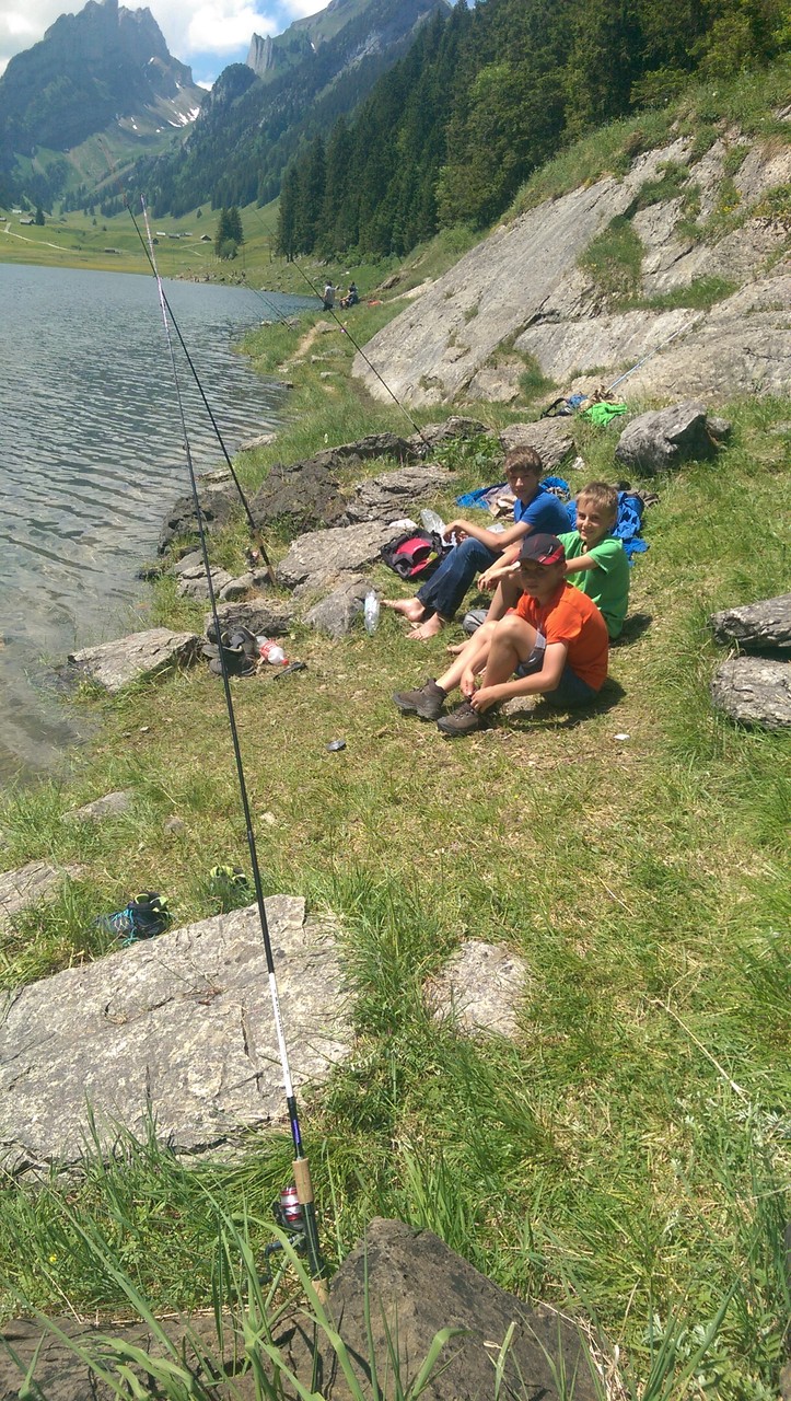 Bereits am Freitag, 5. Juni trafen sich einige Petrijünger im Plattenbödeli. Nach einem geselligen Abend und einer kurzen Nacht standen schon etliche Fischer um 0530 Uhr am Sämtisersee und genossen den wunderbaren Morgen und die Stille. Einige Frühaufsteher stiegen in aller Herrgottsfrühe schon das Brühltobel hoch und gingen direkt zum See.