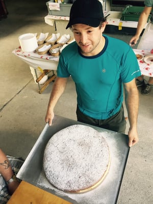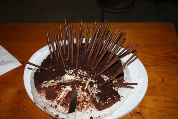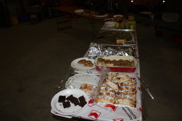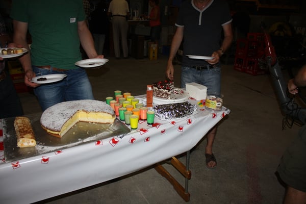 Das Dessert-Buffet wurde schon bald eröffnet. Da hatten Nussgipfel, Schwarzwäldertorte, Crémen, köstliche Blechkuchen und Kekse und, und, und schnell ihre Liebhaber. Unser "Biene" zauberte einen riesigen Bienenstich auf den Tisch. Gelernt ist gelernt!