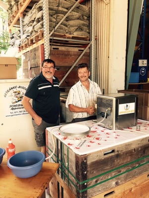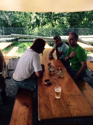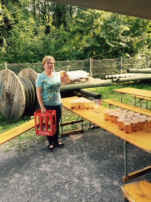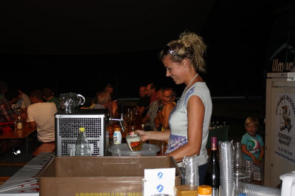 Schon am frühen Abend funktionierte dann zum Leidwesen aller Biertrinker der Zapfhahn nicht mehr. Anruf genügt --- und unser Getränkelieferant "de Höfler" brachte eine neue Zapfstelle. Minuten später floss der kühle, gelbe Saft schon in die Gläser und die durstigen Kehlen freuten sich.