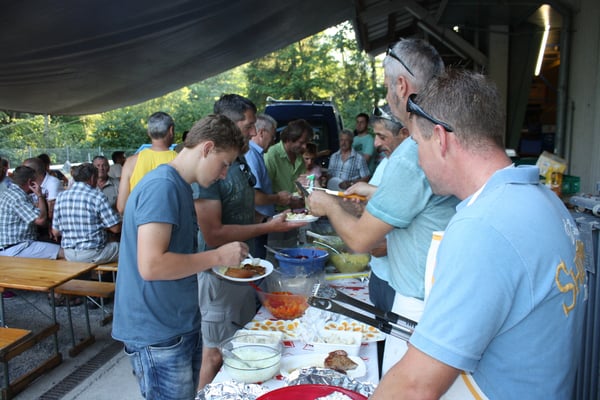 Letztes Jahr kamen deutlich mehr Fischer und Angehörige zum Grillfest. Vielleicht war es heuer wirklich zu warm. Schön, dass die meisten Stammgäste auch heuer wieder nach Steinegg kamen.