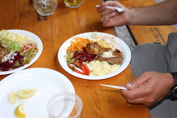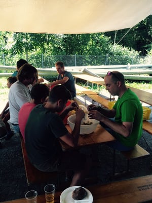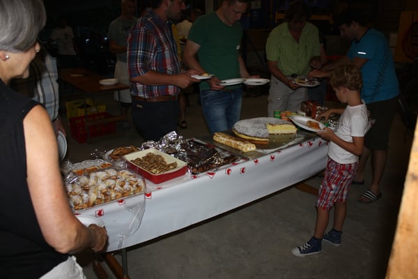 Dann wurde in strammer Einerkolonne das Essen gefasst. So mancher fasste kurze Zeit später schon den zweiten Teller. Unmöglich, wenn jemand noch mit Hunger unter dem Zeltdach sass und den lauen Sommerabend genoss.