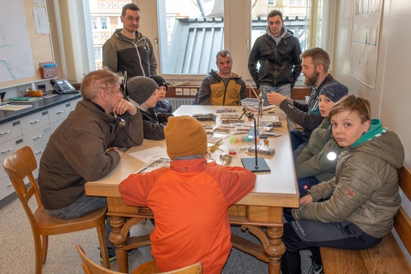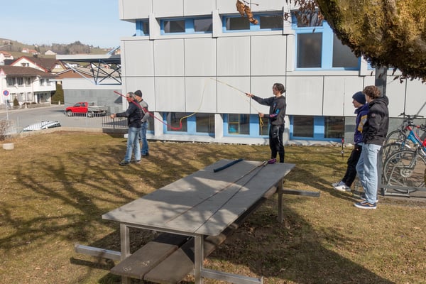 Am Nachmittag vom 21. März lösten Daniel Sonderegger (Säge) Emanuel Gmünder (Mäx) und Ruedi Fässler ihr versprechen ein und zeigten den Interessierten, wie man einfache Fliegen bindet und wie man mit der Fliegenrute umgeht. Das Ziel war es, die Berührungsängste abzubauen und zu zeigen, dass Fliegenfischen keine Hexerei ist. Beim Posten "Knotenkunde" wurden die wichtigsten Knoten gezeigt und geübt.